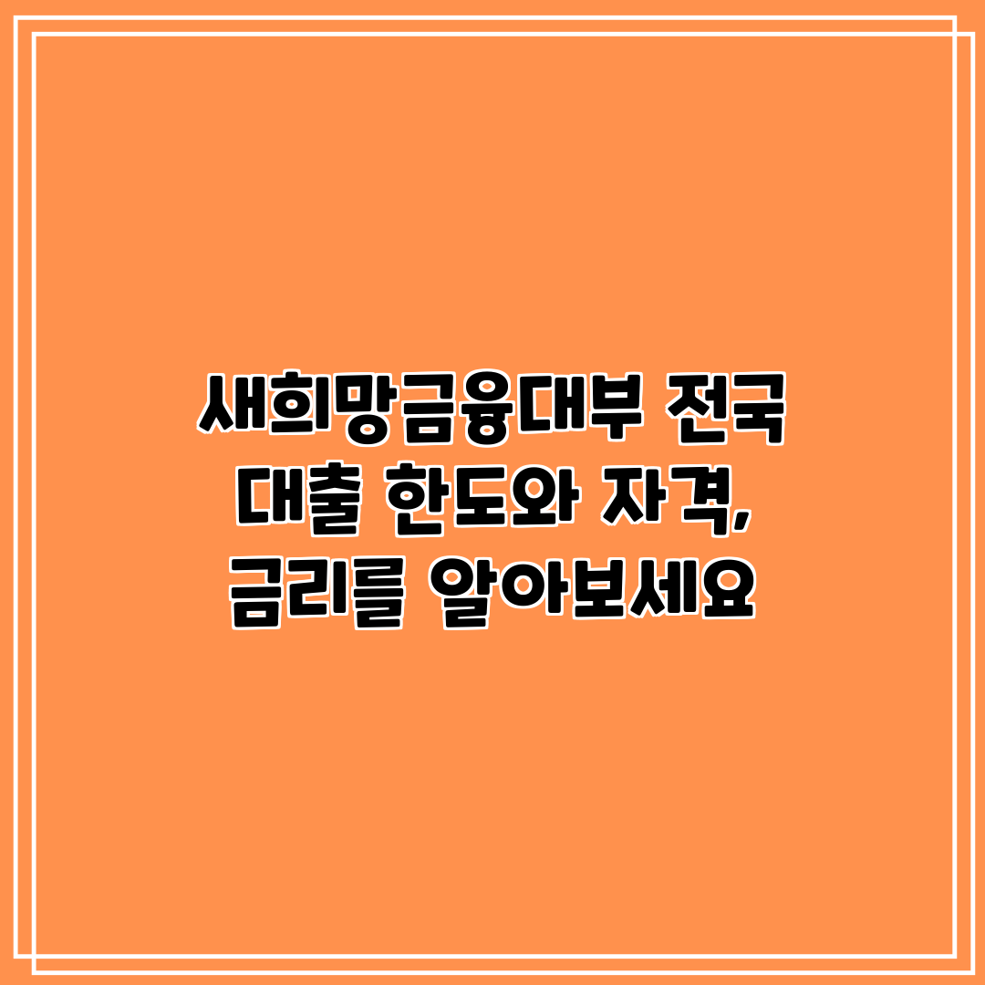 새희망금융대부 전국: 대출 한도와 자격, 금리를 알아보세요
