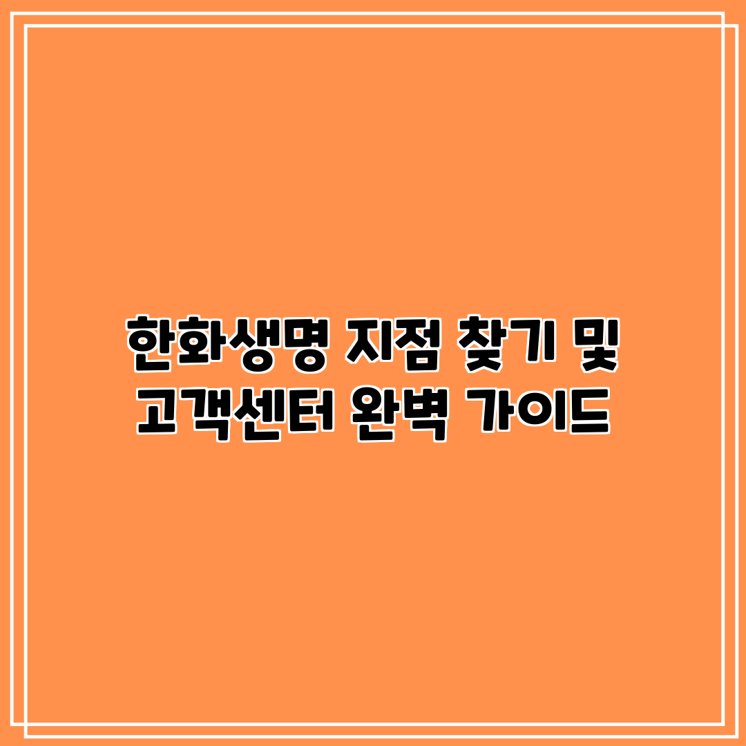 한화생명 지점 찾기 및 고객센터 완벽 가이드