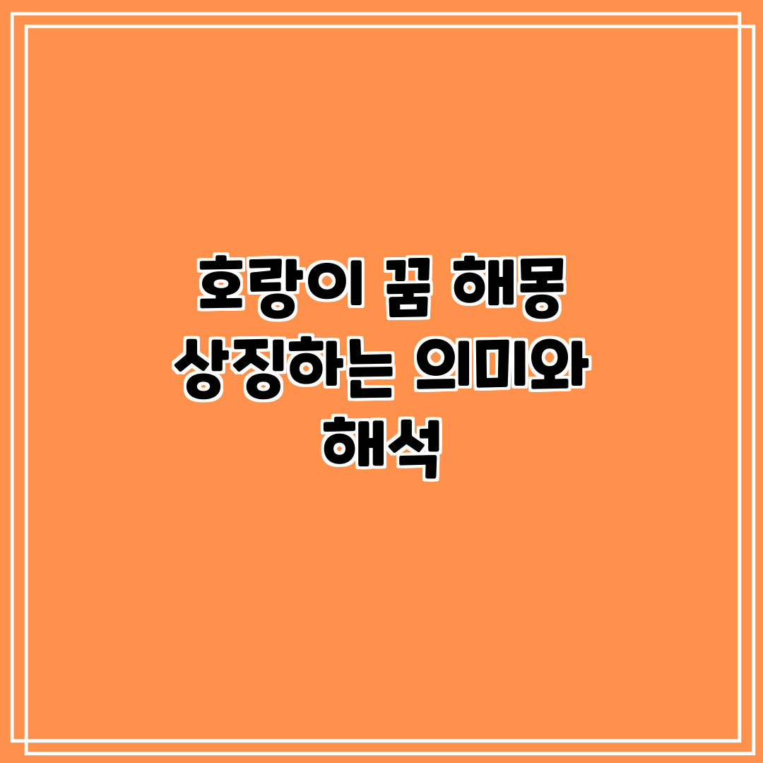 호랑이 꿈의 다양한 상징 호랑이 꿈은 꿈의 세계에서 강력한 상징으로 여겨집니다. 꿈에서 호랑이를 만나면 상당한 힘과 용기를 내포하고 있으며, 개인의 ...