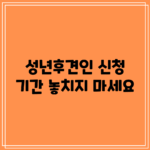 성년후견인 신청 기간을 놓치면 매우 심각한 결과를 초래할 수 있습니다. 이런 상황을 피하기 위해서는 미리 준비하는 것이 중요해요!