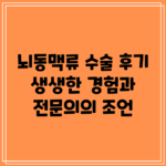 뇌동맥류 수술 후기는 이러한 준비를 통해 보다 안전하게 진행될 수 있습니다. 전문의의 조언을 바탕으로 하여, 감정적으로도 준비가 되어 있는 것이 중요합니다.