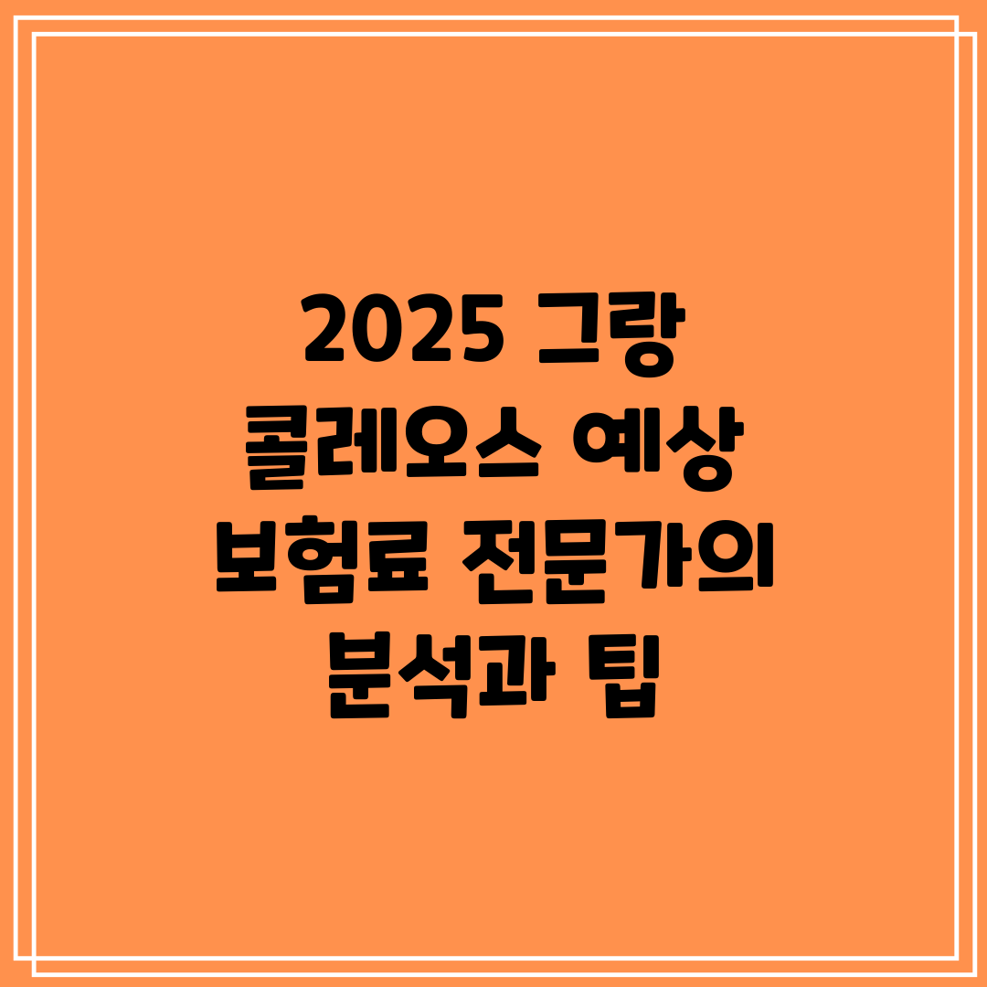 2025 그랑 콜레오스 예상 보험료: 전문가의 분석과 팁!
