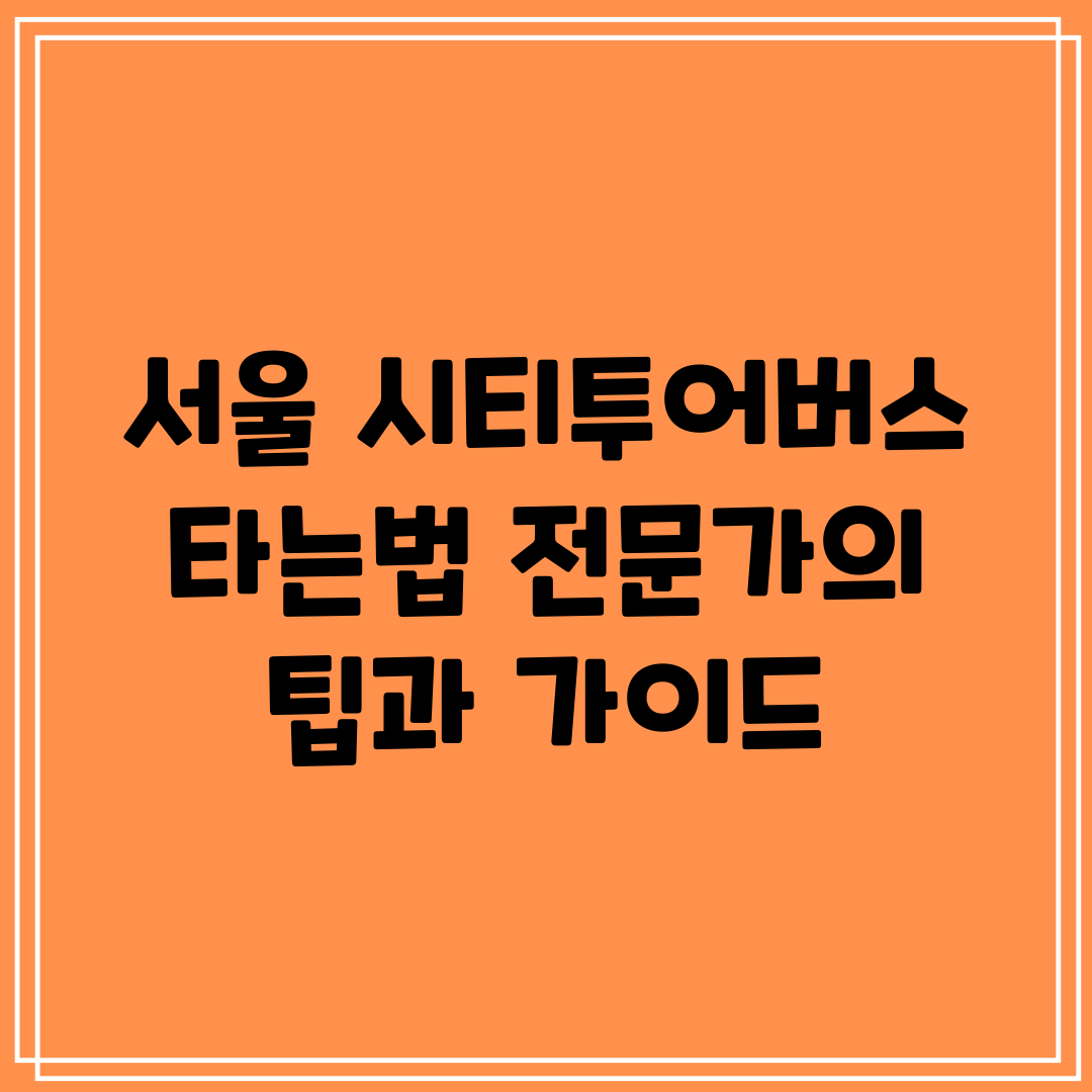 서울 시티투어버스 타는법: 전문가의 팁과 가이드