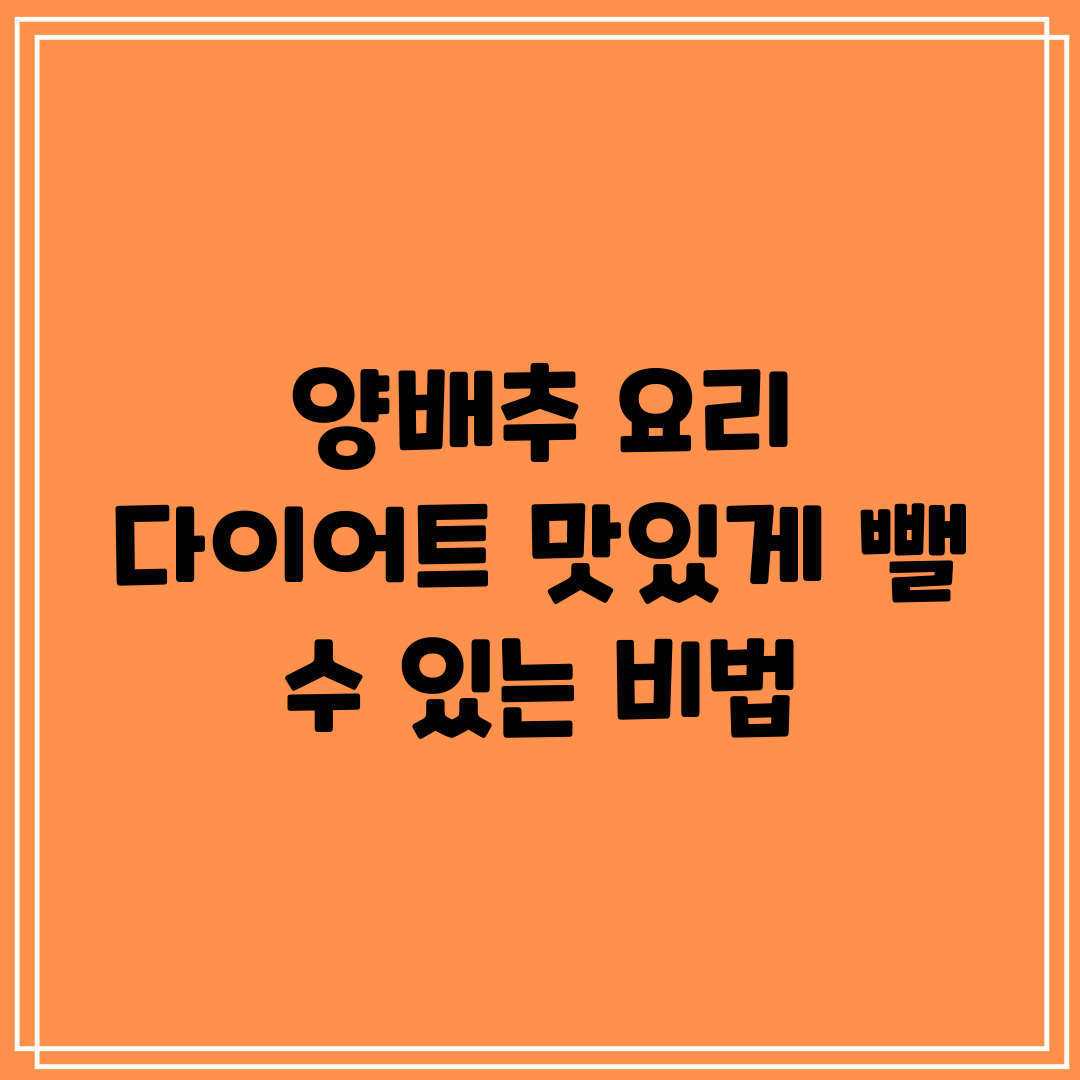 양배추 요리 다이어트: 맛있게 뺄 수 있는 비법!
