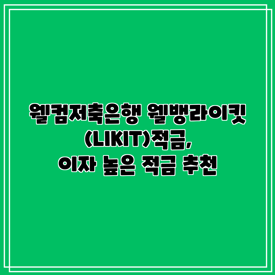 💡 웰뱅라이킷 적금의 매력적인 이자율을 지금 바로 알아보세요! 💡 👉 웰뱅라이킷 적금 이자 확인하기 4가지 이자 혜택 웰컴저축은행의 웰뱅라이킷(LIKIT)적금은 이자 ...