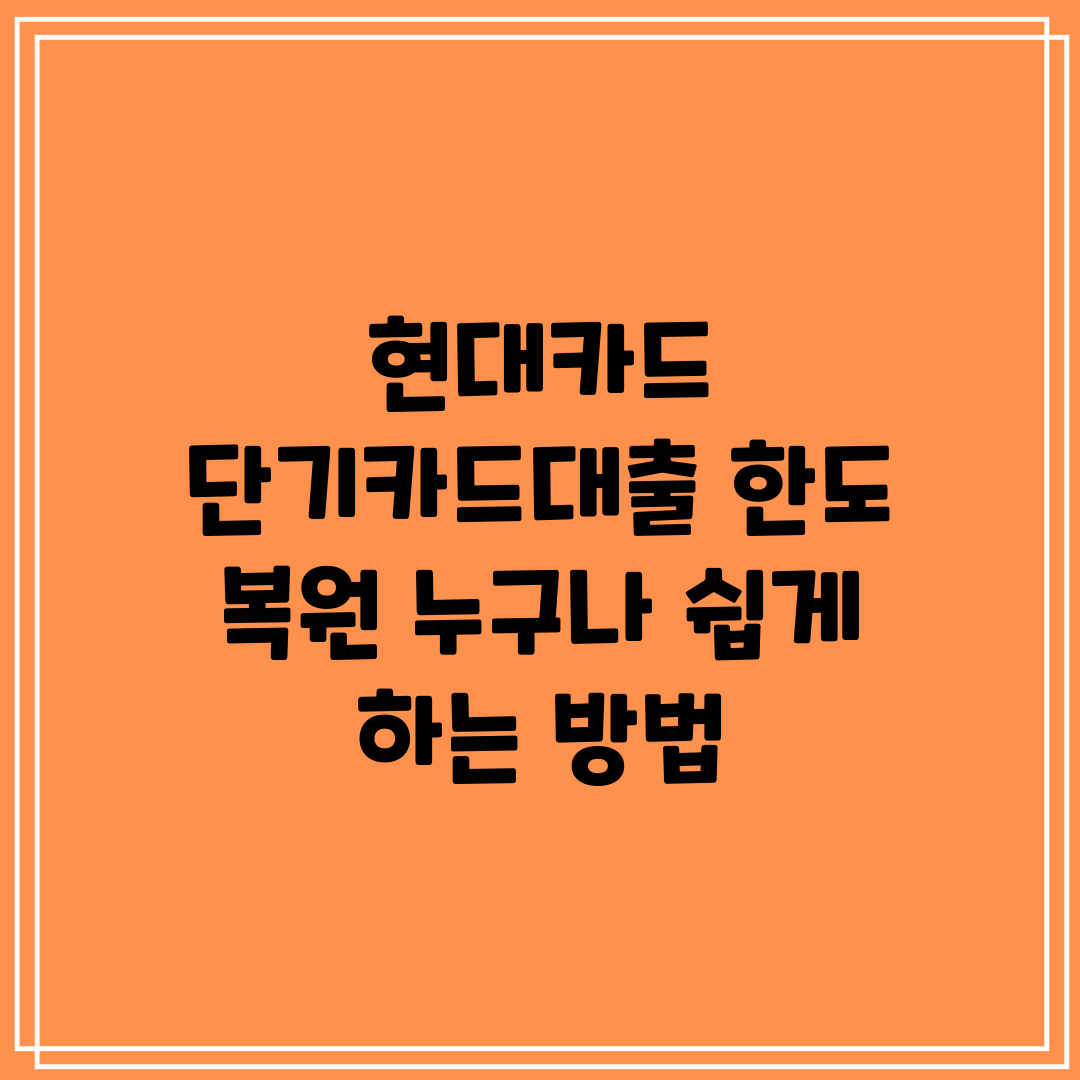 현대카드 단기카드대출 한도 복원, 누구나 쉽게 하는 방법!