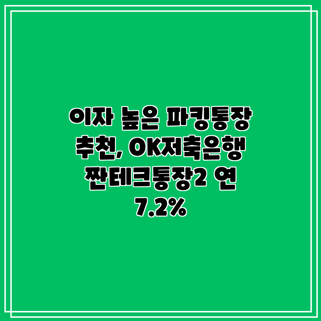 이자 높은 파킹통장 추천, OK저축은행 짠테크통장2 연 7.2%