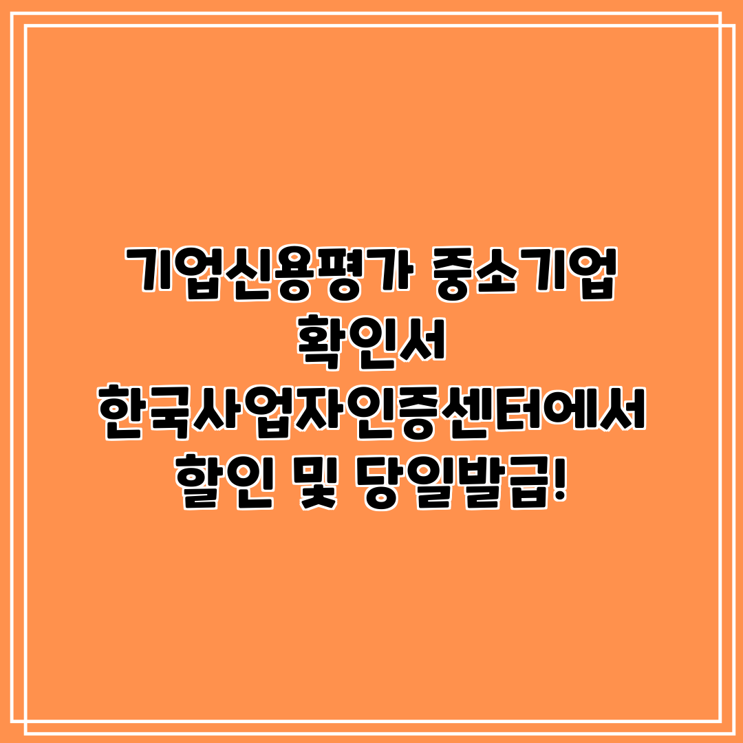 기업신용평가 중소기업 확인서 한국사업자인증센터에서 할인 및 당일발급!